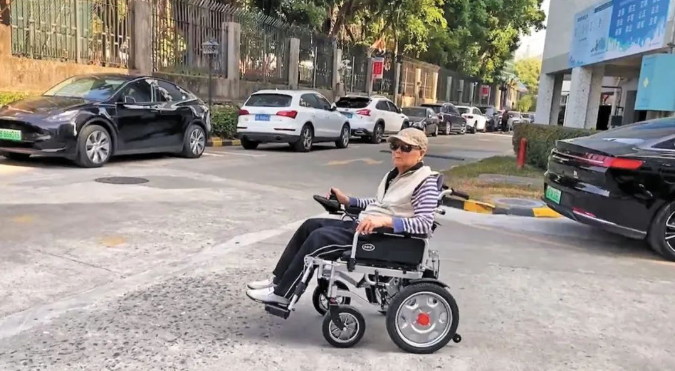 ▲江爺爺使用通過深圳居家適老化改造項目申請到的電動輪椅自助出行。