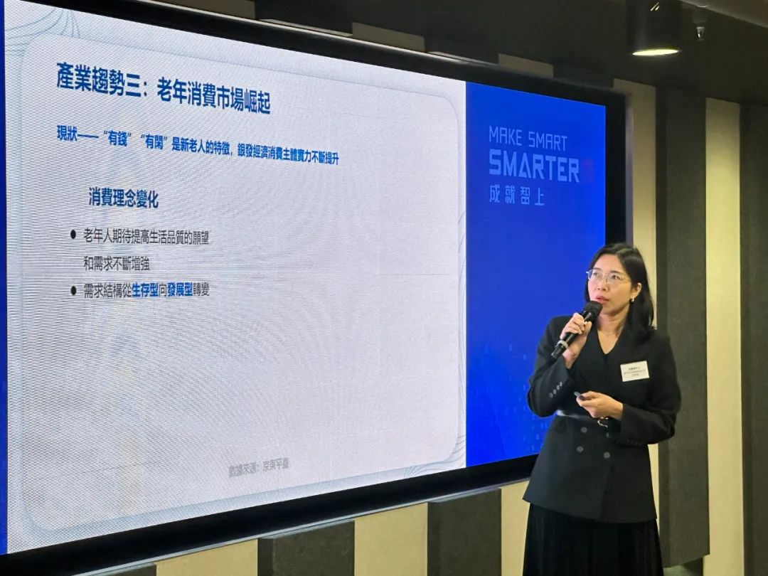 廣州市保利錦漢展覽有限公司項目經理范惠珊從當前銀發(fā)經濟市場與潛力切入、基于SIC老博會這一中國老齡產業(yè)風向標展會在養(yǎng)老領域的十年深耕經驗,從展商產品變化、專業(yè)買家變化、同期活動變化等方面對未來中國養(yǎng)老市場趨勢變化進行了多方面分析,并對開拓內地市場的路徑提出了獨到見解。其指出:香港企業(yè)未來可持續(xù)關注內地養(yǎng)老市場的變化,挖掘高質量養(yǎng)老合作伙伴,并逐步在品牌推廣上實現口碑營銷及場景全覆蓋。