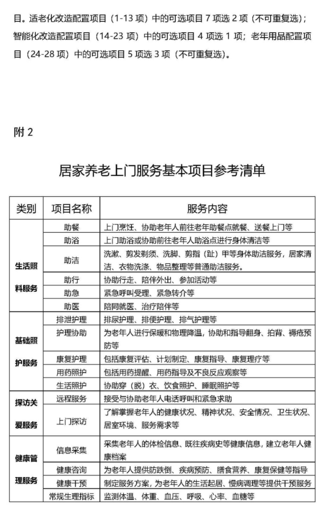 2.居家養(yǎng)老上門服務(wù)基本項(xiàng)目參考清單