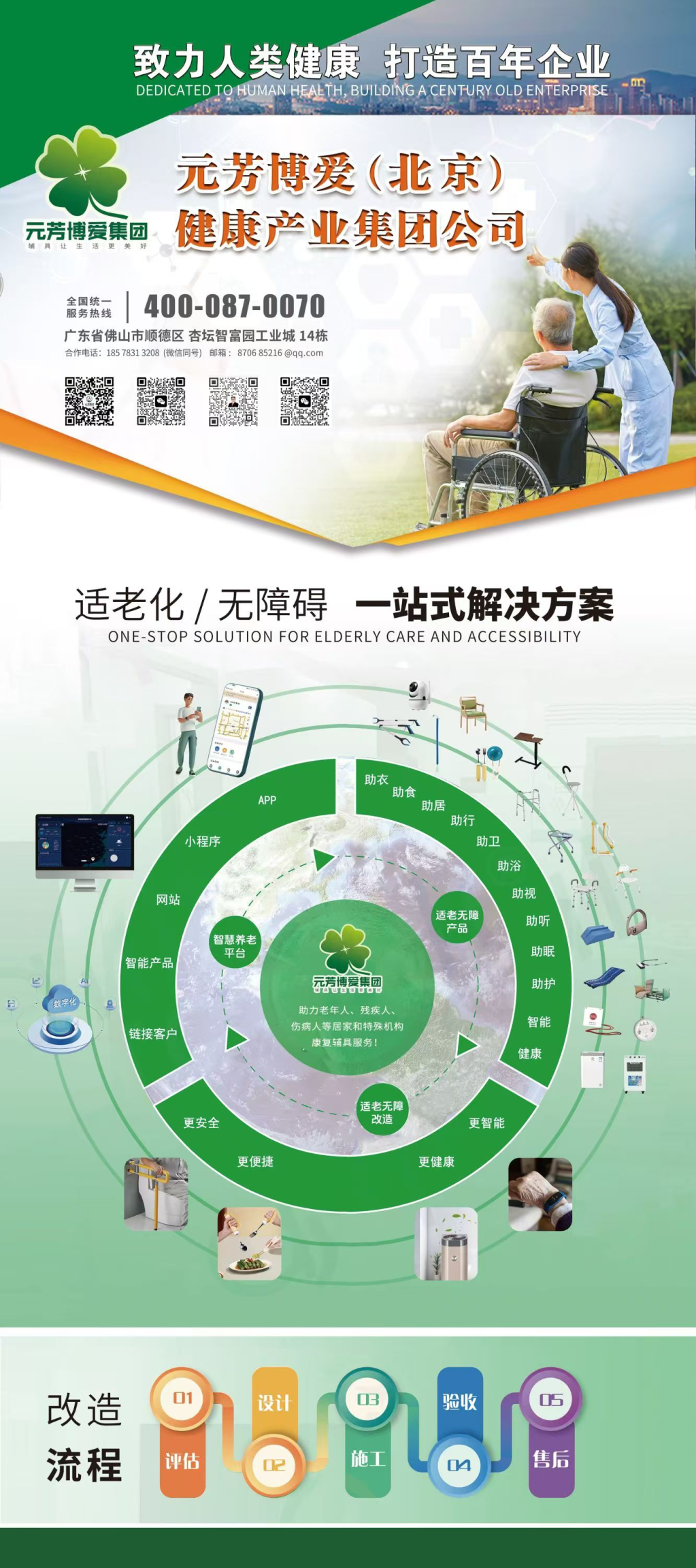元芳博愛集團總部坐落于北京,在大灣區(qū)有多家全資控股子公司,是國內(nèi)專業(yè)提供智能制造、智能物聯(lián)、醫(yī)療制造、高科技服務(wù)等業(yè)務(wù)的集團公司。此外,公司還提供全生命周期康復(fù)輔具整體解決方案、無障礙適老化改造整體解決方案、家庭智慧養(yǎng)老整體解決方案、家庭養(yǎng)老床位建設(shè)等服務(wù)。