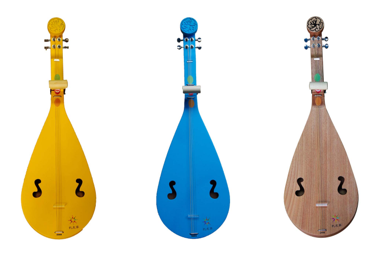 融合了中國傳統(tǒng)文化元素的彩虹琴,外形來源于中國的柳琴(又稱土琵琶),有黃、藍(lán)、原木三個顏色。彩虹琴琴體及琴弦均為定制,琴頸處有特制壓桿,可以通過簡單的方式獲得日常伴奏最常用的三個和弦;每琴4根弦,琴弦分布較密,用配套的大撥片直接撥弦而不用認(rèn)弦。彩虹琴既可以單人演奏,也可以通過活動指揮的動作指揮,讓一個從來不會演奏樂器的人在幾分鐘里就可以參與到樂器演奏和伴奏中,體驗音樂活動的樂趣。