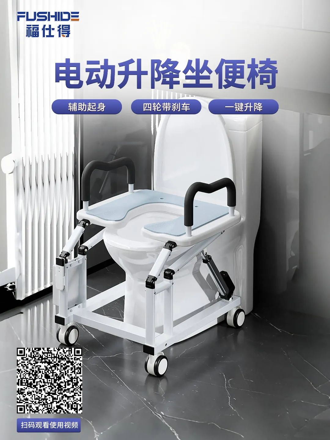 輔助起身,四輪帶剎車,一鍵升降