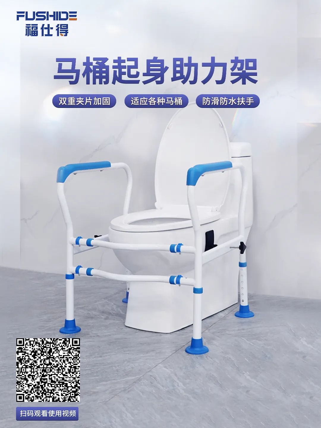 雙重夾片加固,適應各種馬桶,防滑防水扶手