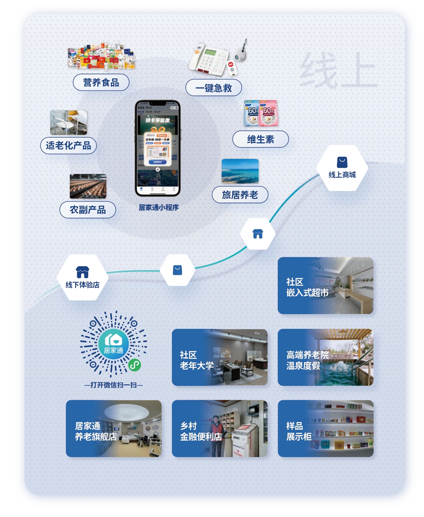 居家通(北京)科技有限公司搭建老齡科技與金融數(shù)據(jù)運(yùn)營支撐平臺(tái)、老齡產(chǎn)業(yè)供應(yīng)鏈與行業(yè)渠道分銷推介社會(huì)化服務(wù)平臺(tái)、老年人及子女社會(huì)化為老服務(wù)接入平臺(tái)、社區(qū)居民(老干部)與村居委會(huì)(老干局、軍休所)互動(dòng),共同構(gòu)成居家通老齡產(chǎn)業(yè)協(xié)作與推介服務(wù)社會(huì)化平臺(tái)。