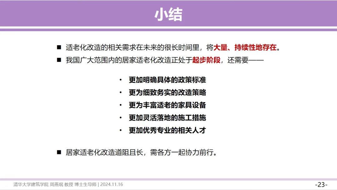 最后,周燕珉呼吁:“居家適老化改造道阻且長(zhǎng),需各方一起協(xié)力前行。”