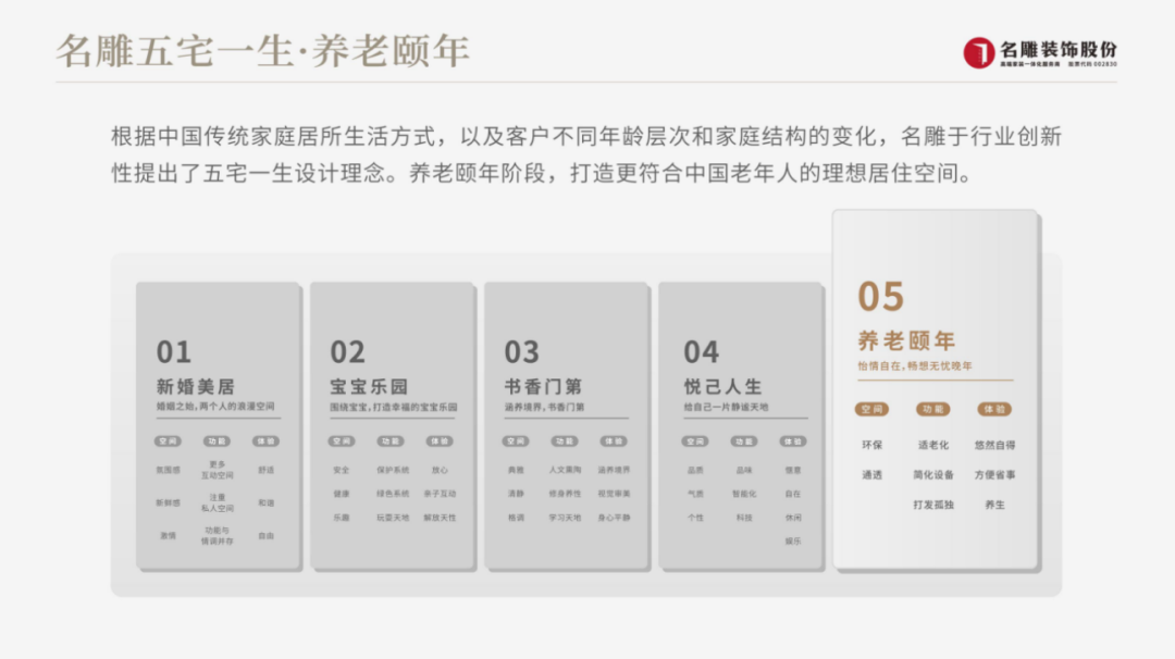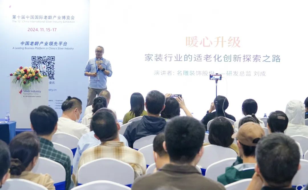 名雕裝飾研發(fā)總監(jiān)劉成以名雕裝飾股份“五宅一生·養(yǎng)老頤年”項(xiàng)目為例,詳細(xì)介紹了家裝行業(yè)的適老化創(chuàng)新探索之路。