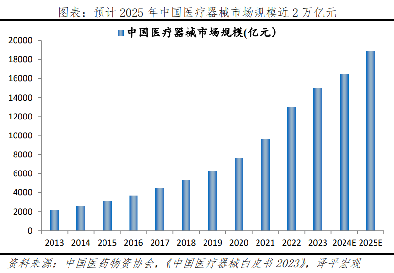 老齡化來(lái)臨,醫(yī)保體制日益健全,人均醫(yī)療保健消費(fèi)支出和衛(wèi)生費(fèi)用保持增長(zhǎng),眼科、心血管、骨科、口腔等醫(yī)療器械迎來(lái)機(jī)遇。在國(guó)家產(chǎn)業(yè)政策的支持和醫(yī)療衛(wèi)生體制改革的推動(dòng)下,醫(yī)療器械行業(yè)呈現(xiàn)出長(zhǎng)期穩(wěn)定增長(zhǎng)的需求趨勢(shì)。據(jù)中國(guó)醫(yī)藥物資協(xié)會(huì)數(shù)據(jù),2022年中國(guó)醫(yī)療器械行業(yè)的市場(chǎng)規(guī)模約為1.3萬(wàn)億元,預(yù)計(jì)到2025年將接近2萬(wàn)億元。醫(yī)療器械行業(yè)中游細(xì)分產(chǎn)品包括高端植介入耗材、低端醫(yī)用耗材、醫(yī)療設(shè)備和體內(nèi)診斷等。隨著老齡化到來(lái)、醫(yī)保體制日益健全、人均醫(yī)療保健消費(fèi)支出和衛(wèi)生費(fèi)用保持快速增長(zhǎng)等,眼科、心血管耗材、骨科、口腔耗材等與中老年息息相關(guān)的醫(yī)療器械迎來(lái)新機(jī)遇。具體來(lái)看: