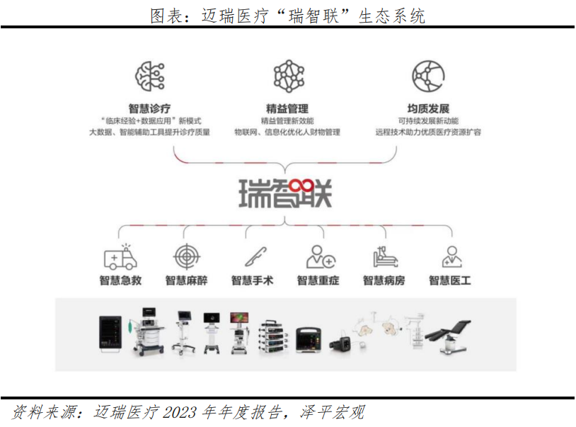 多元發(fā)展構(gòu)筑戰(zhàn)略縱深。1)2024年1月,收購(gòu)惠泰醫(yī)療,快速進(jìn)入電生理和血管介入等高值耗材領(lǐng)域。2)基于領(lǐng)先的腔鏡平臺(tái),加速提升耗材市場(chǎng)份額,邁瑞在“設(shè)備+耗材”品類有較強(qiáng)的優(yōu)勢(shì)和研發(fā)基因。3)拓展動(dòng)物醫(yī)療,面向不同動(dòng)物以及應(yīng)用場(chǎng)景,建立體外診斷、生命信息與支持、醫(yī)學(xué)影像技術(shù)研究平臺(tái)。
