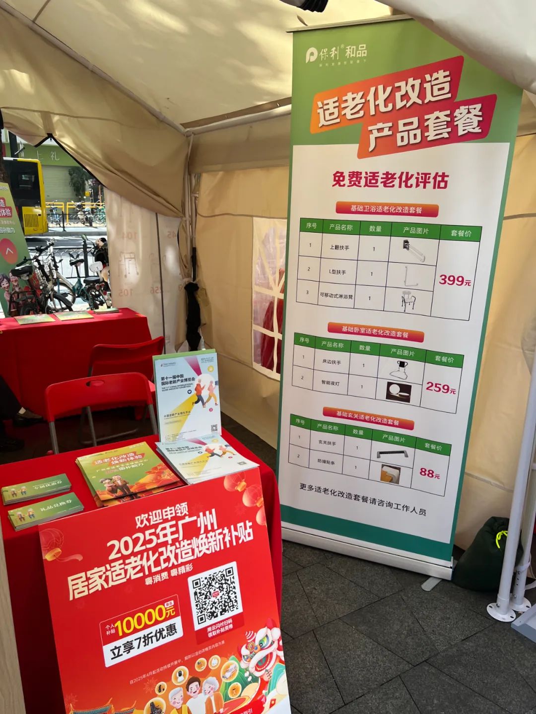 SIC老博會(huì)聯(lián)合保利(廣州)健康產(chǎn)業(yè)投資有限公司共同亮相廣州首場(chǎng)銀齡集市,組委會(huì)向到場(chǎng)的市民群眾推介居家適老化改造的國(guó)補(bǔ)優(yōu)惠活動(dòng),相關(guān)產(chǎn)品可享受高達(dá)30%的補(bǔ)貼,最高補(bǔ)貼金額可達(dá)1萬元,切實(shí)為老年群體的居家生活改善提供有力支持。