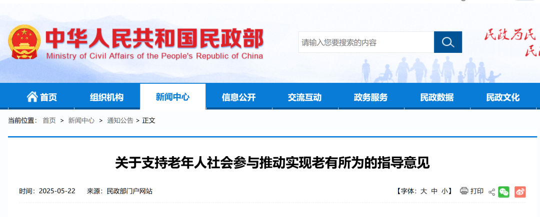 近日,民政部等19部門聯(lián)合印發(fā)《關于支持老年人社會參與推動實現(xiàn)老有所為的指導意見》。明確了2029年和2035年支持老年人社會參與的階段性目標,從提升老年人政治參與水平、推進老年志愿服務常態(tài)長效開展、提升老年人參與社會活動質量、強化老年人社會參與保障等4個方面,提出12條政策措施。