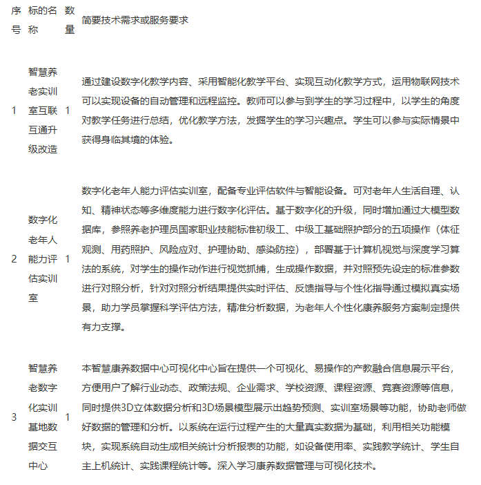 采購(gòu)需求:智慧養(yǎng)老實(shí)訓(xùn)室建設(shè)項(xiàng)目