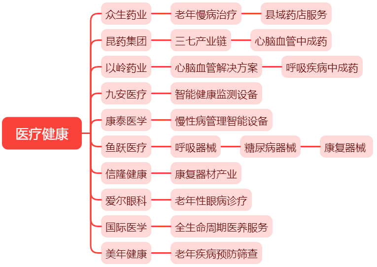 核心公司:眾生藥業(yè)(002317.SZ)、昆藥集團(600422.SZ)、以嶺藥業(yè)(002603.SZ)、九安醫(yī)療(002432.SZ)、康泰醫(yī)學(xué)(300869.SZ)、魚躍醫(yī)療(002223.SZ)、信隆健康(002105.SZ)、愛爾眼科(300015.SZ)、國際醫(yī)學(xué)(000516.SZ)、美年健康(002044.SZ)等。