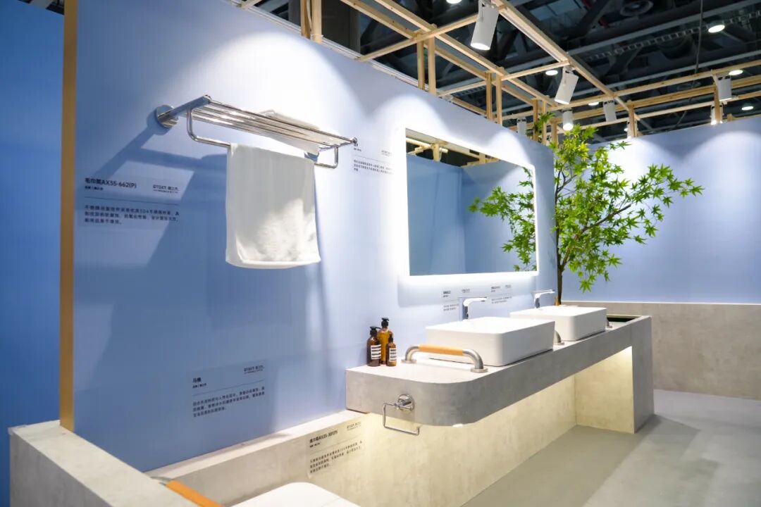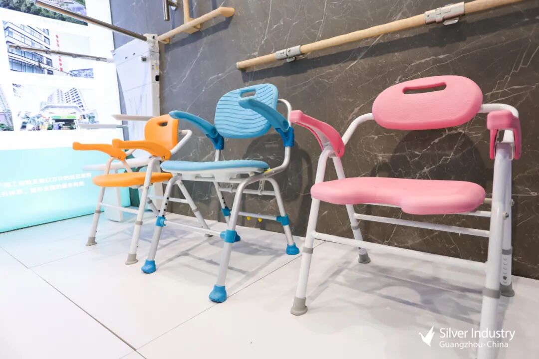 在浴室,體驗(yàn)?zāi)茏杂烧{(diào)節(jié)高度的適老化鏡柜,可以安裝在洗浴區(qū)、走廊、馬桶邊、床邊的防滑扶手、免安裝的馬桶升降椅、抗菌防滑的折疊洗澡椅、無(wú)障礙面盆扶手,將高危區(qū)域轉(zhuǎn)化為安全空間。