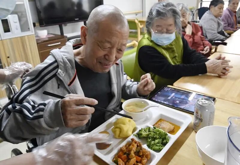 近年來,北京市通過創(chuàng)新居家社區(qū)養(yǎng)老服務(wù)新模式、新業(yè)態(tài),先后建設(shè)了100個(gè)街道、鄉(xiāng)鎮(zhèn)區(qū)域養(yǎng)老服務(wù)中心,為老年人提供家門口的普惠養(yǎng)老服務(wù)。圖為老人們?cè)诒本┦谐枀^(qū)來廣營區(qū)域養(yǎng)老服務(wù)中心福壽苑養(yǎng)老公寓內(nèi)吃午飯。新華社記者 李欣 攝