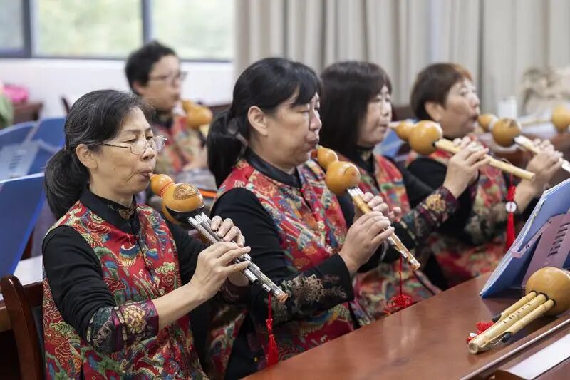近年來,湖北孝昌縣持續(xù)優(yōu)化拓展適老化服務(wù)場景,推動(dòng)老年群體辦事體驗(yàn)和養(yǎng)老服務(wù)從“基礎(chǔ)保障”向“品質(zhì)服務(wù)”跨越,不斷提升老年群體的獲得感、幸福感。圖為在孝昌縣老年大學(xué),學(xué)員們?cè)趯W(xué)習(xí)葫蘆絲吹奏。新華社記者 伍志尊 攝
