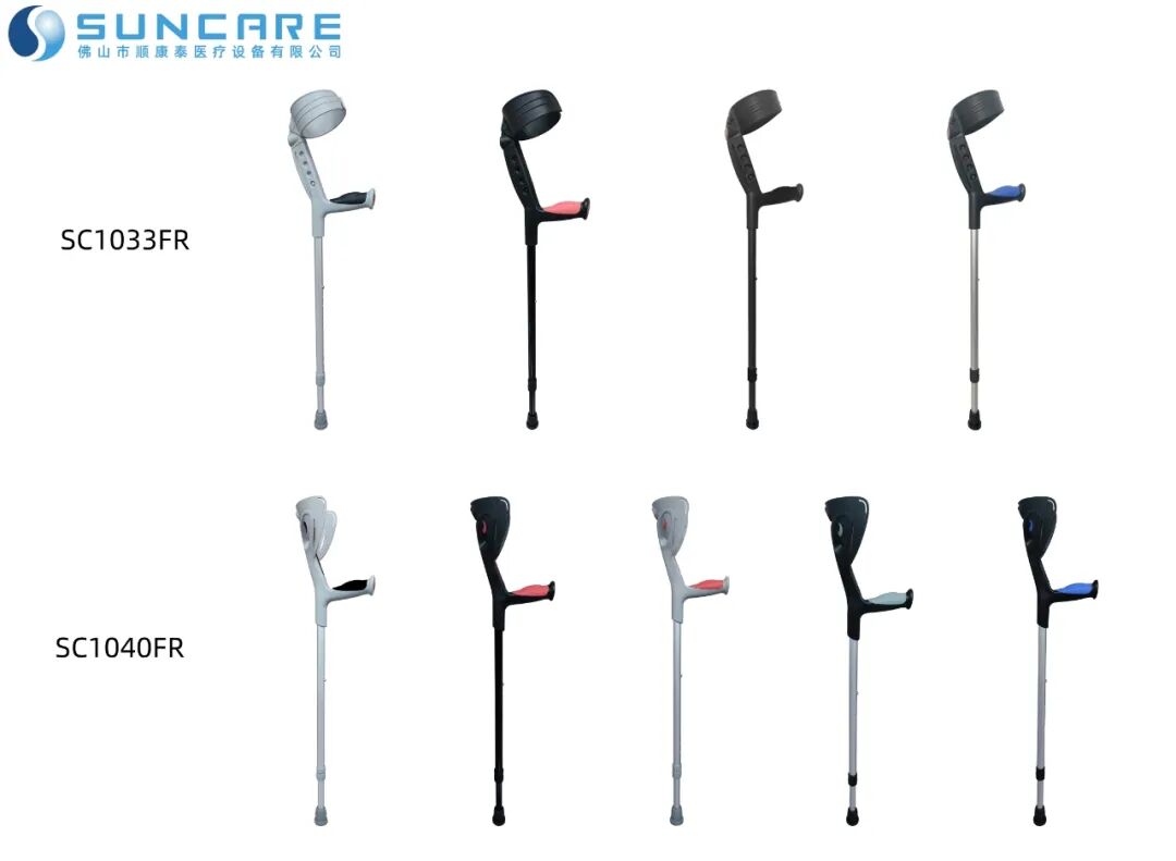 型號SC1033FR、SC1040FR的法式調(diào)節(jié)前臂拐,具備一體成型塑料拐杖頭,不易變形;防滑掌心握把更舒適;加厚拐杖腳墊更穩(wěn)固;高度可調(diào)節(jié),適合多人群使用;握把前后反光片,出行更安全。
