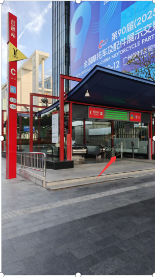 若乘到對(duì)向公交車站,輪椅人士請(qǐng)前往琶洲地鐵站A口,使用地鐵升降機(jī),通過(guò)地下通道,再?gòu)牡罔F琶洲站C口出路面,與前文圖示路線一致。