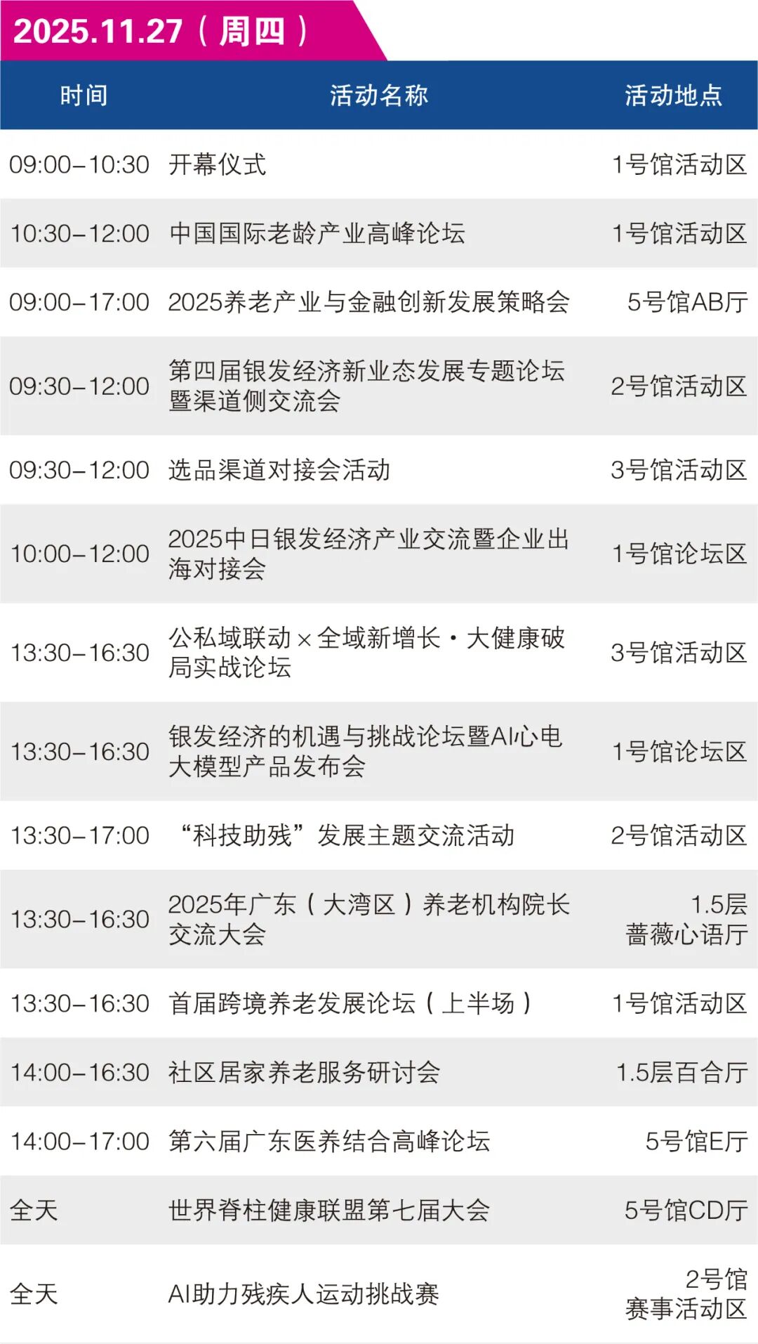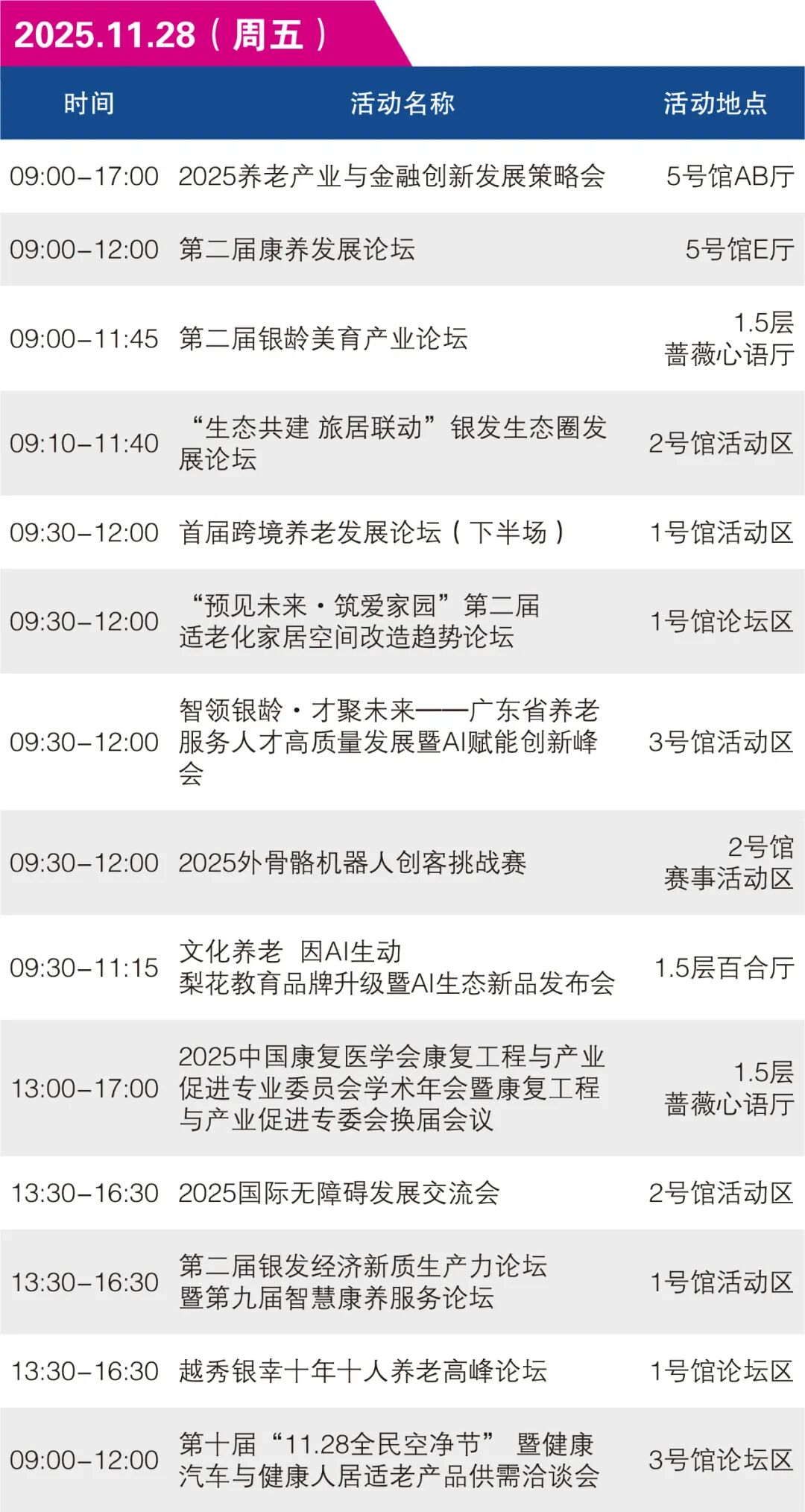 30+場同期活動,話題全面升級,嘉賓陣容重磅。聚焦科技助殘、銀發(fā)經(jīng)濟(jì)、國資康養(yǎng)、養(yǎng)老金融、銀齡美譽(yù)、健康管理、銀發(fā)私域渠道等熱門議題。