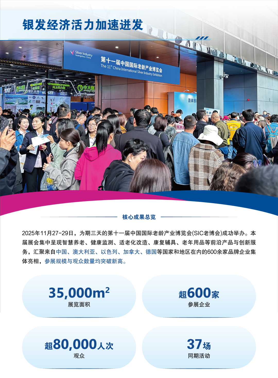 第十一屆中國國際老齡產(chǎn)業(yè)博覽會(SIC老博會)展后報告正式發(fā)布!展會成果“多點開花”,展貿(mào)對接、產(chǎn)業(yè)展示與市場反饋均取得積極成效,結(jié)合關(guān)鍵數(shù)據(jù),一起回顧SIC老博會的多個高光時刻!