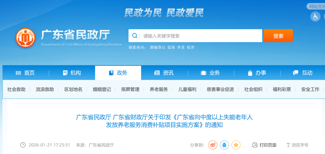 本次補(bǔ)貼政策是廣東完善基本養(yǎng)老服務(wù)體系的重要舉措,將推動減輕失能老年人家庭照護(hù)負(fù)擔(dān),更好滿足失能老年人照護(hù)服務(wù)剛需。符合條件的老年人及家屬可關(guān)注“民政通”平臺操作指南,及時(shí)享受政策紅利。